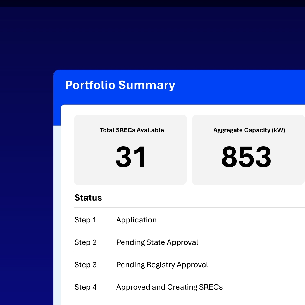 - Track registration status and SREC payments in real time